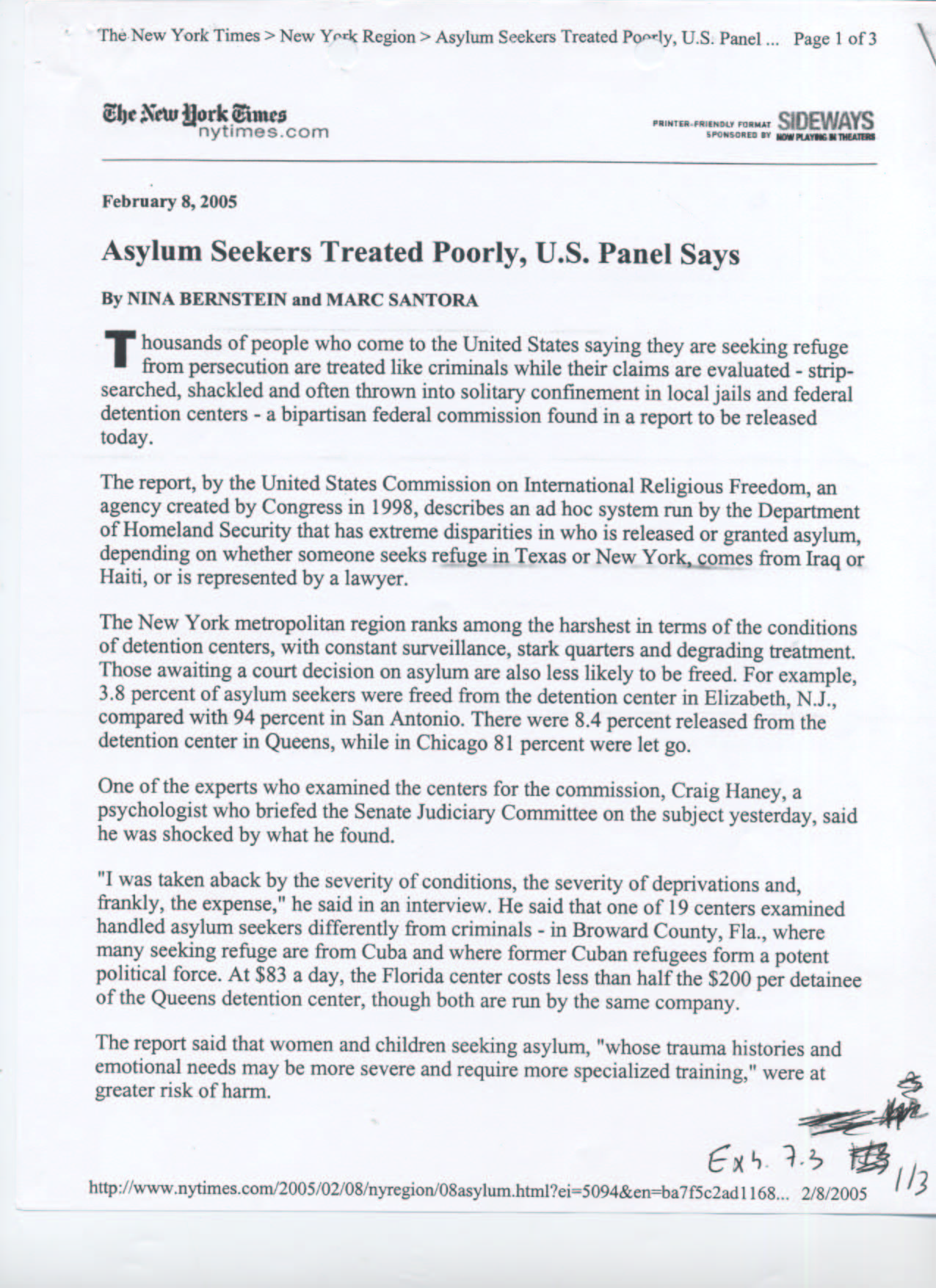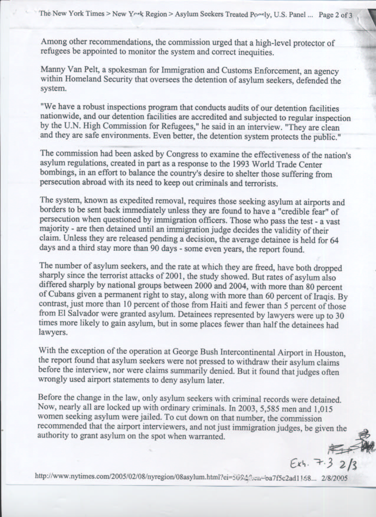 If you want to say that you are 'disapointed' at the way a French refugee was (or more generally asylum seekers are) treated in US (see