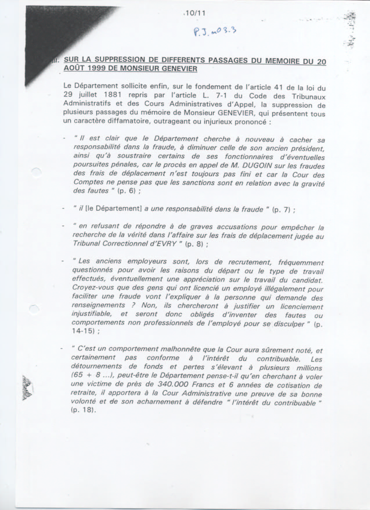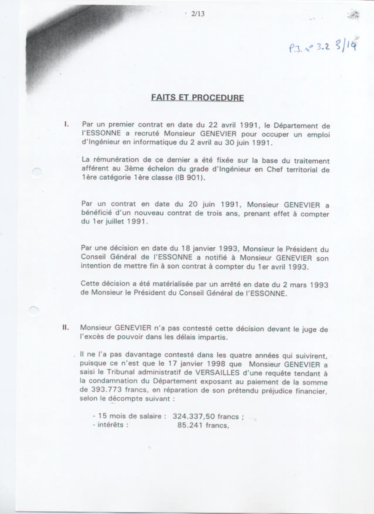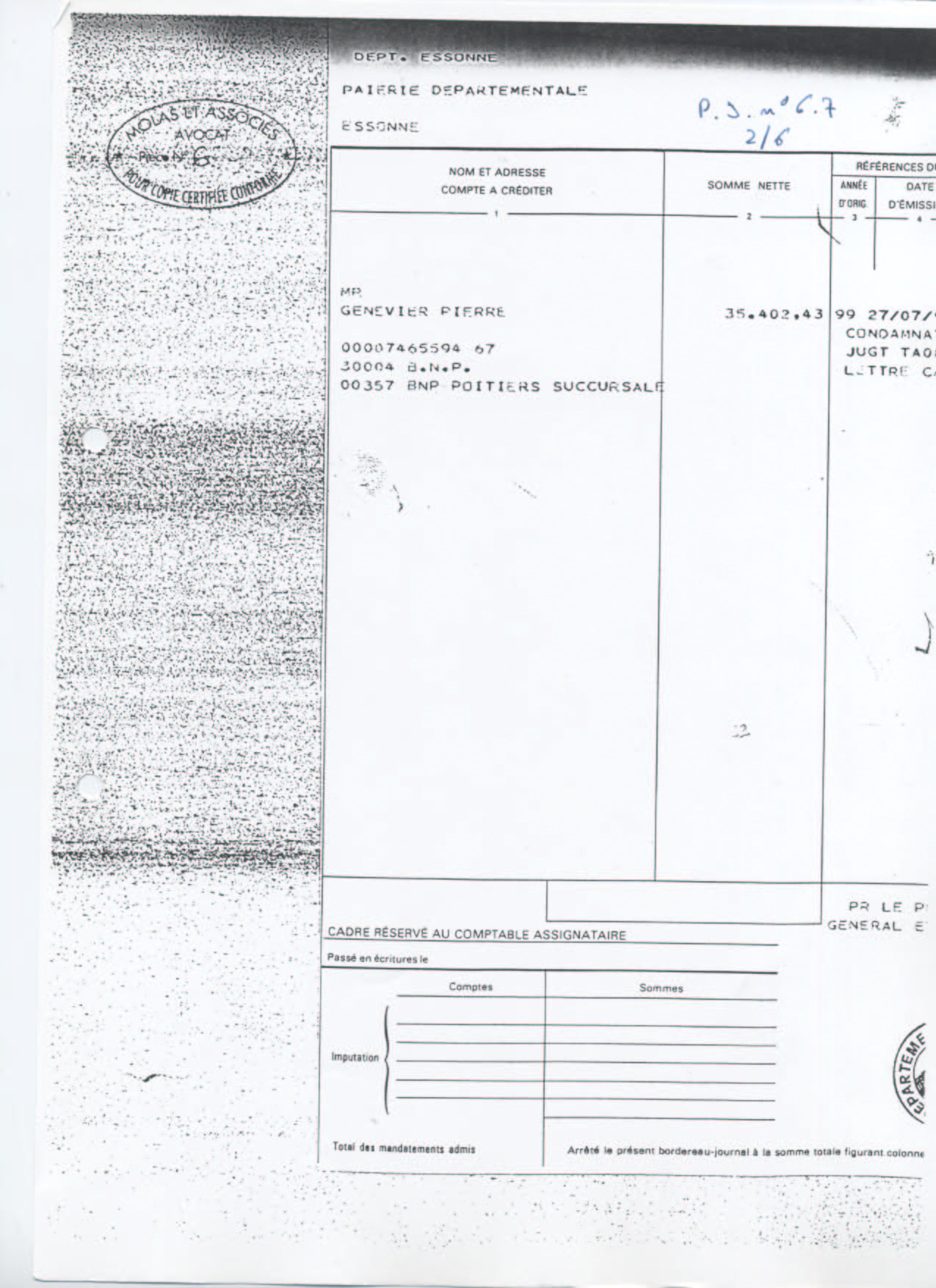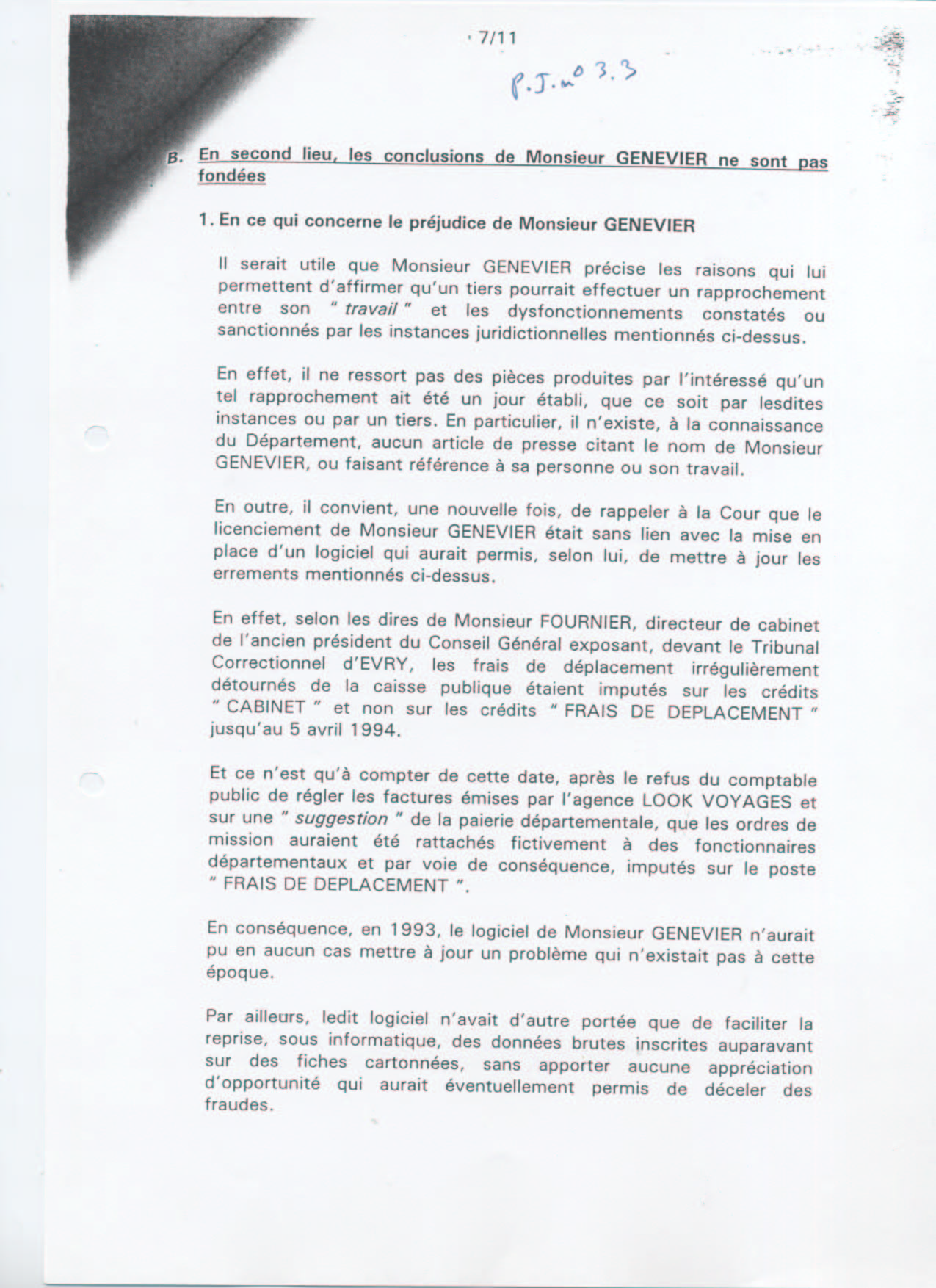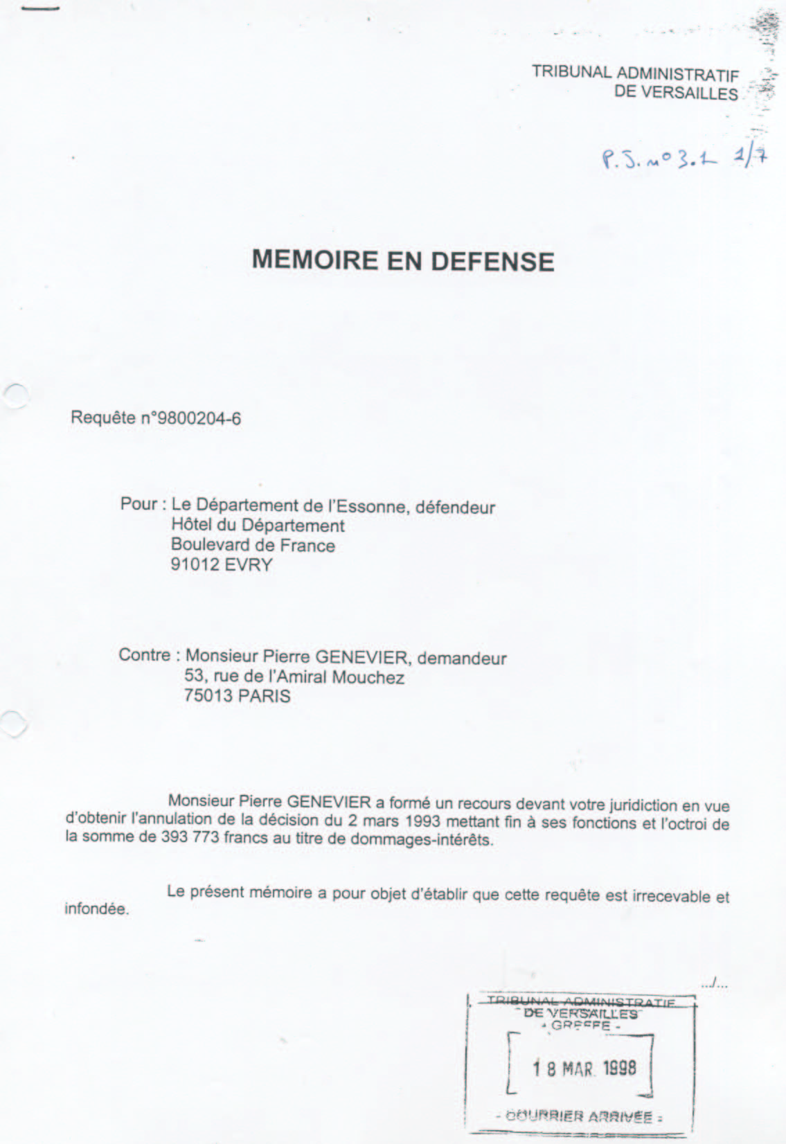 In January 1999, the ‘Court des Comptes’ (COURT OF ACCOUNTS), the agency that controls the work of administration in France listed the Department of Essonne’s various frauds in its annual report and mentioned that the administration lost 100s of millions of francs