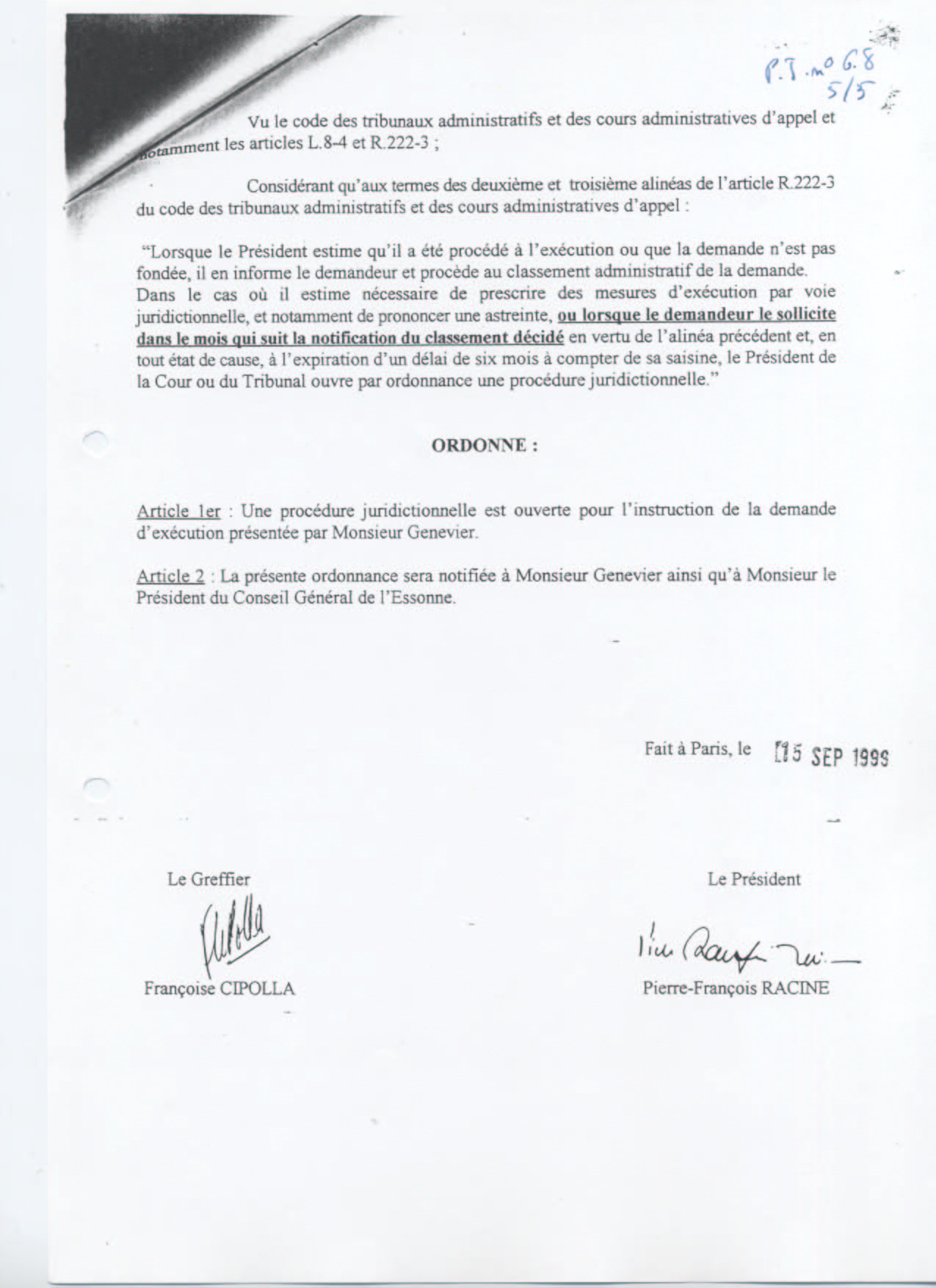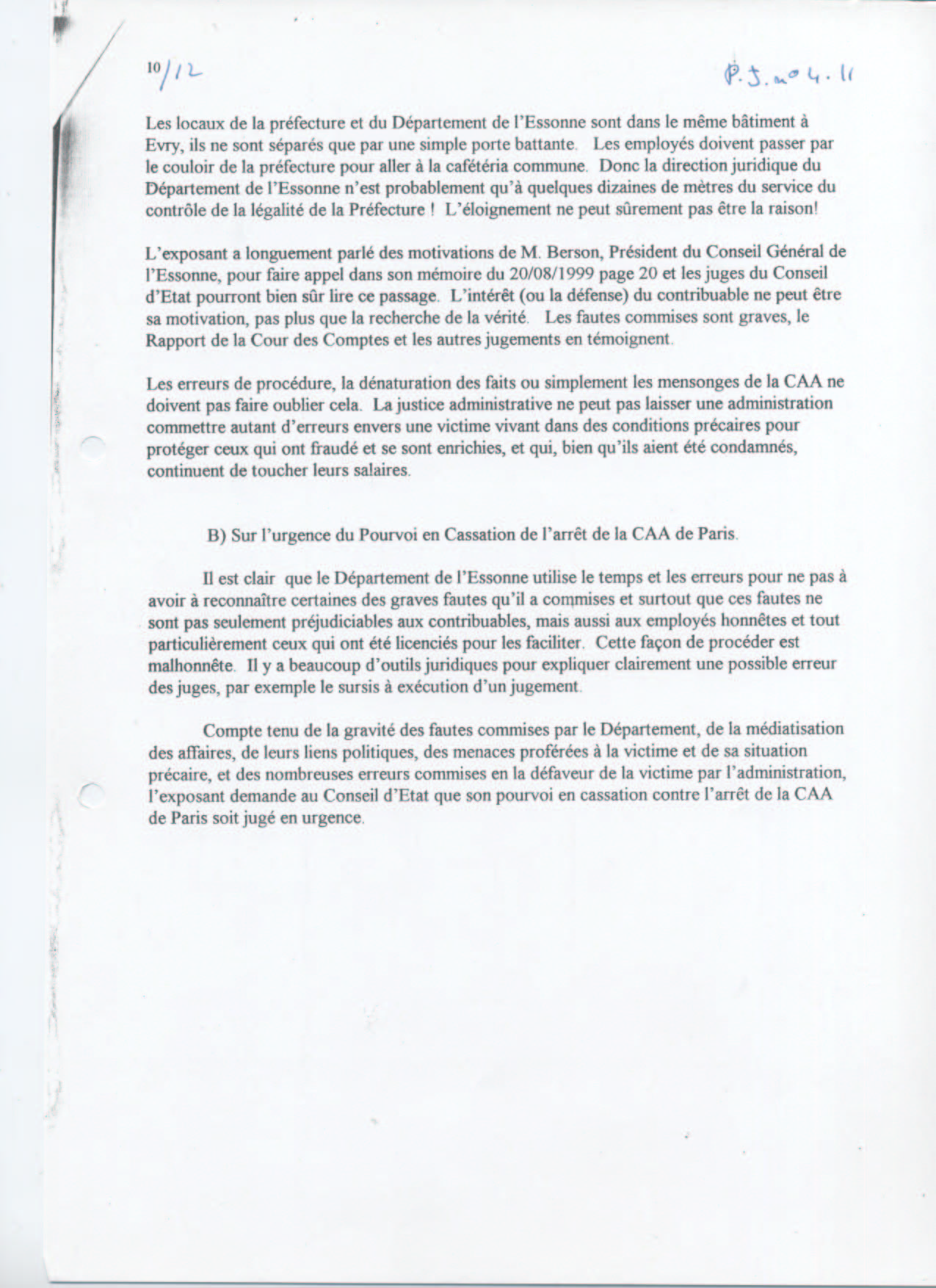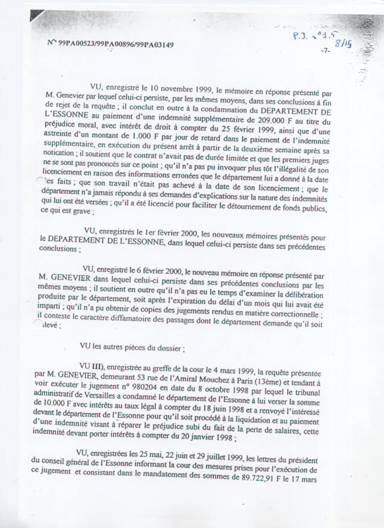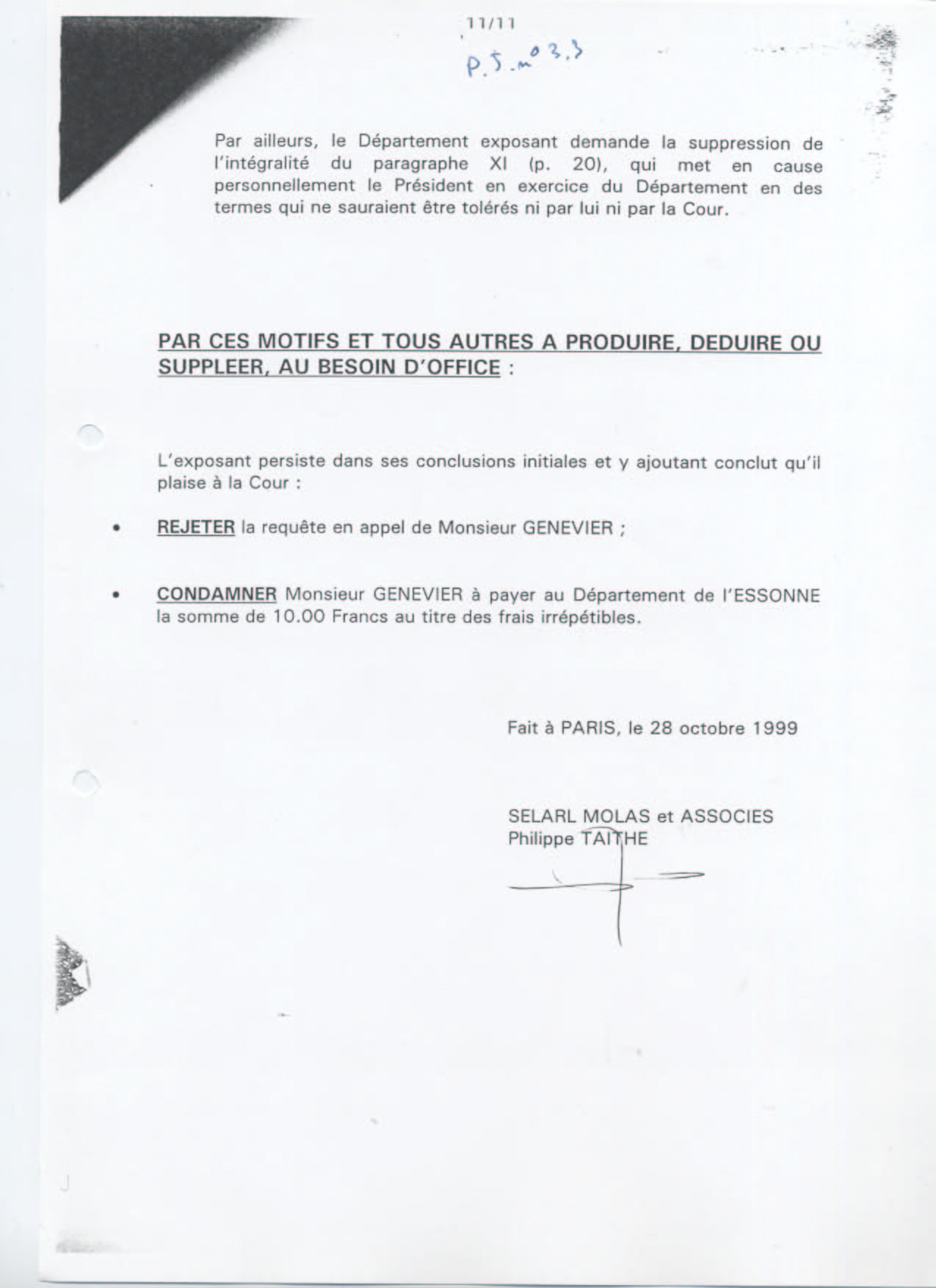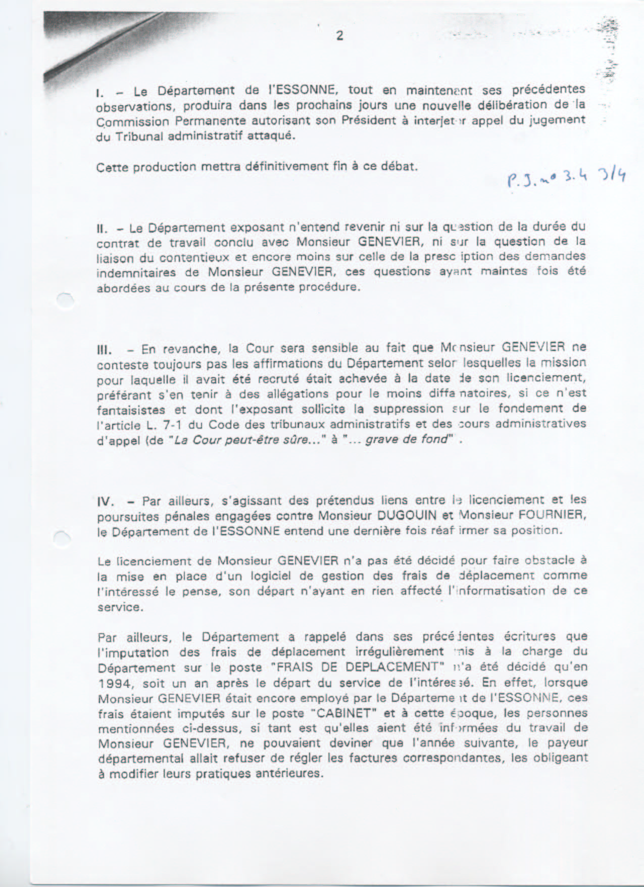In January 1999, the ‘Court des Comptes’ (COURT OF ACCOUNTS), the agency that controls the work of administration in France listed the Department of Essonne’s various frauds in its annual report and mentioned that the administration lost 100s of millions of francs