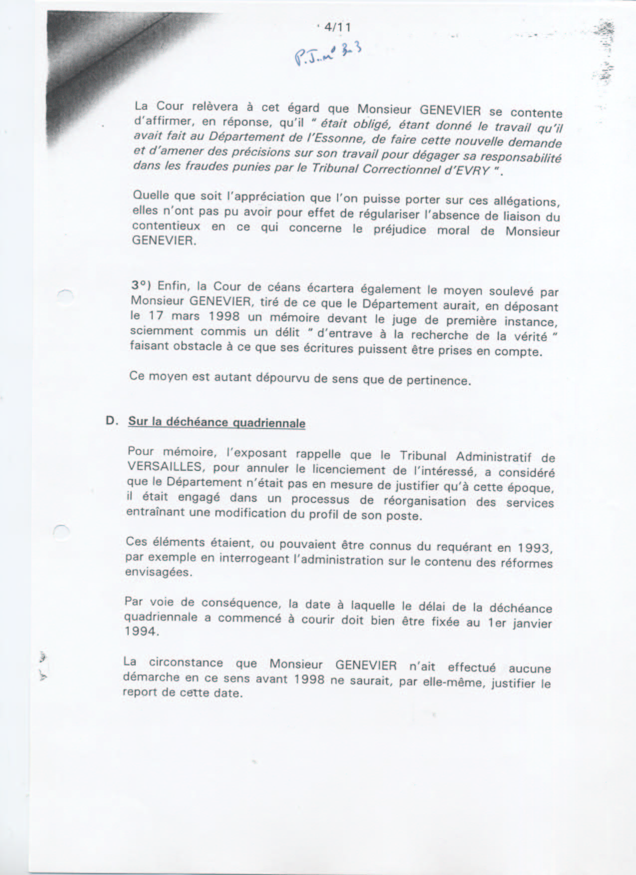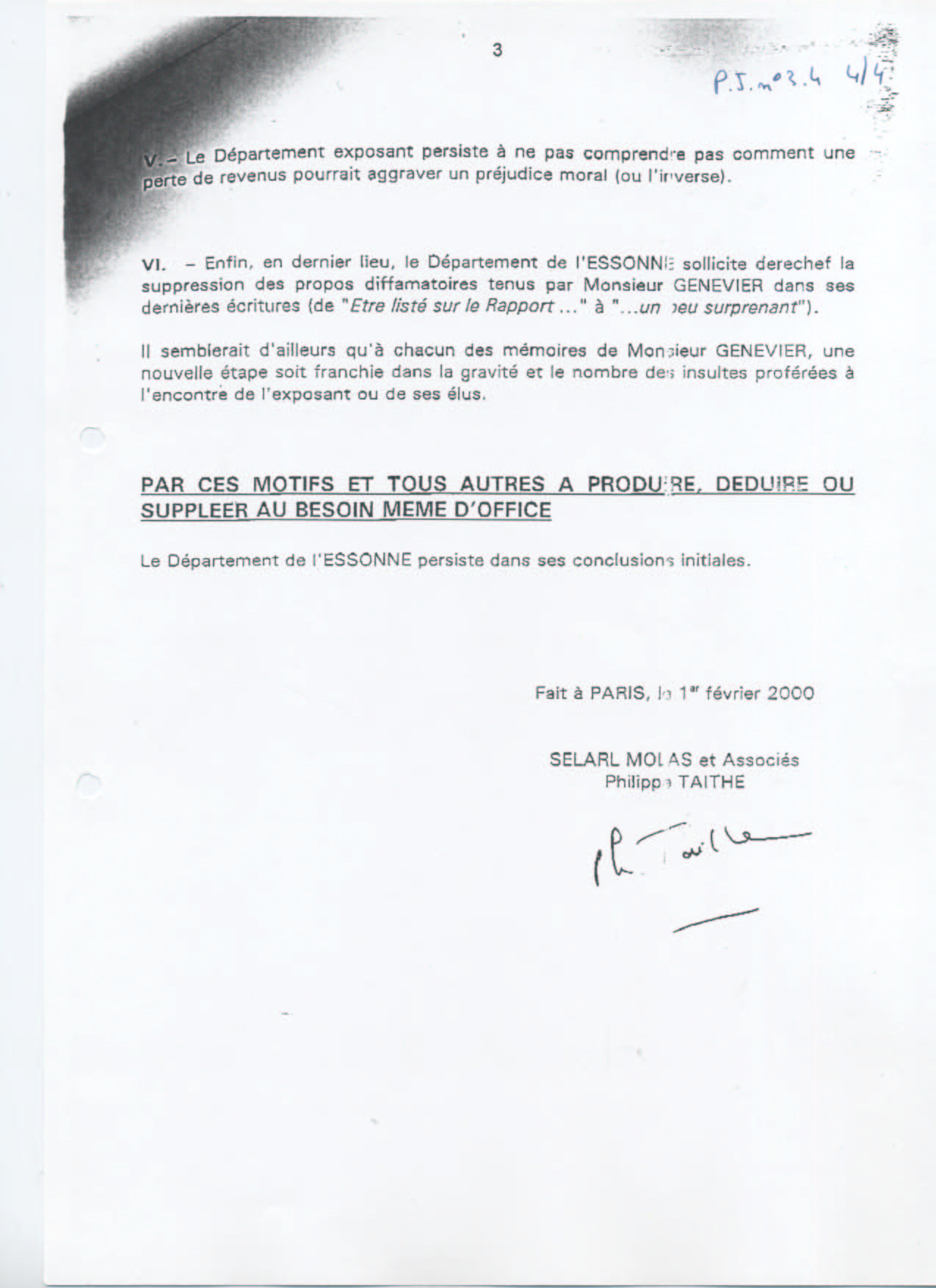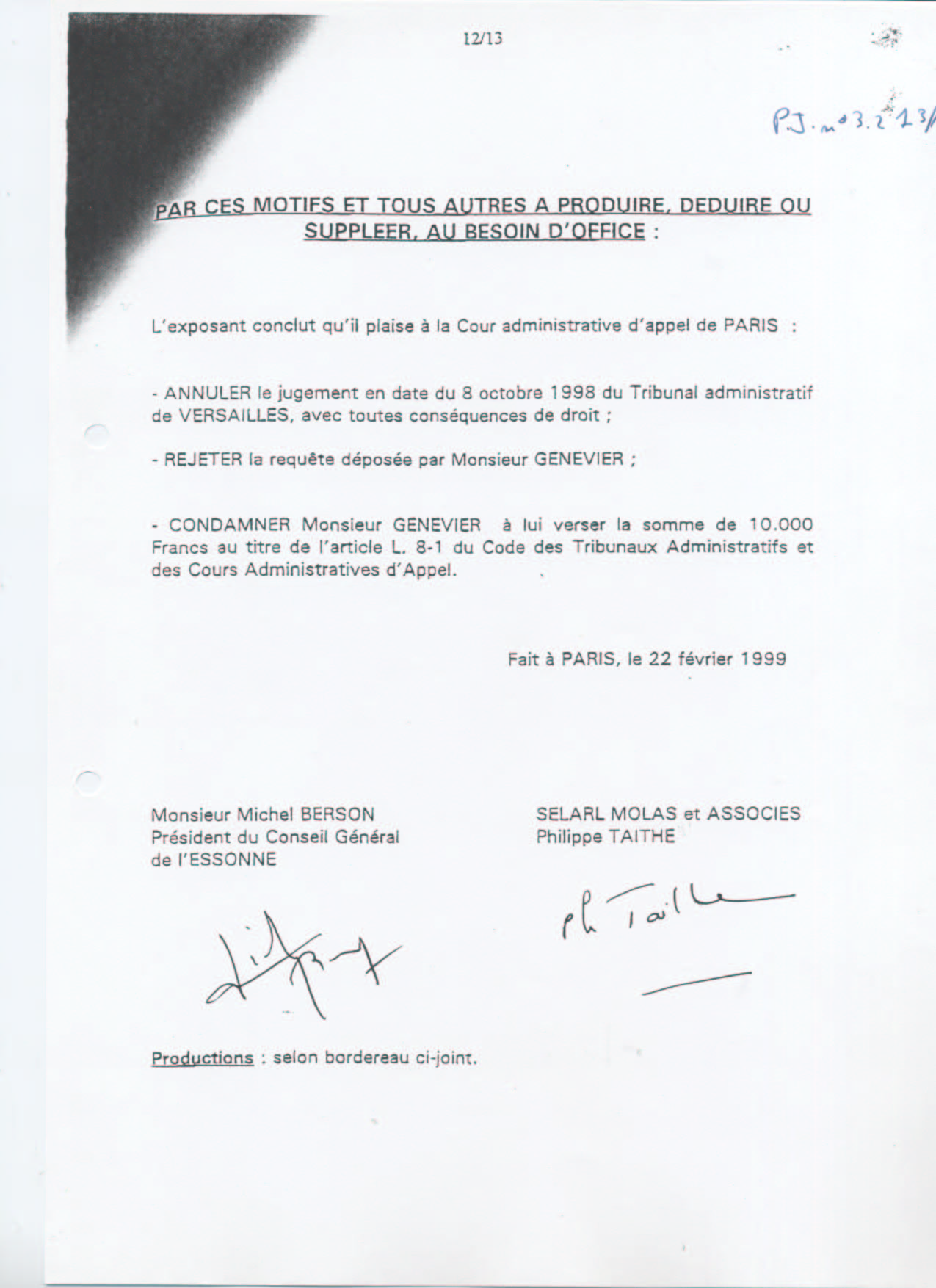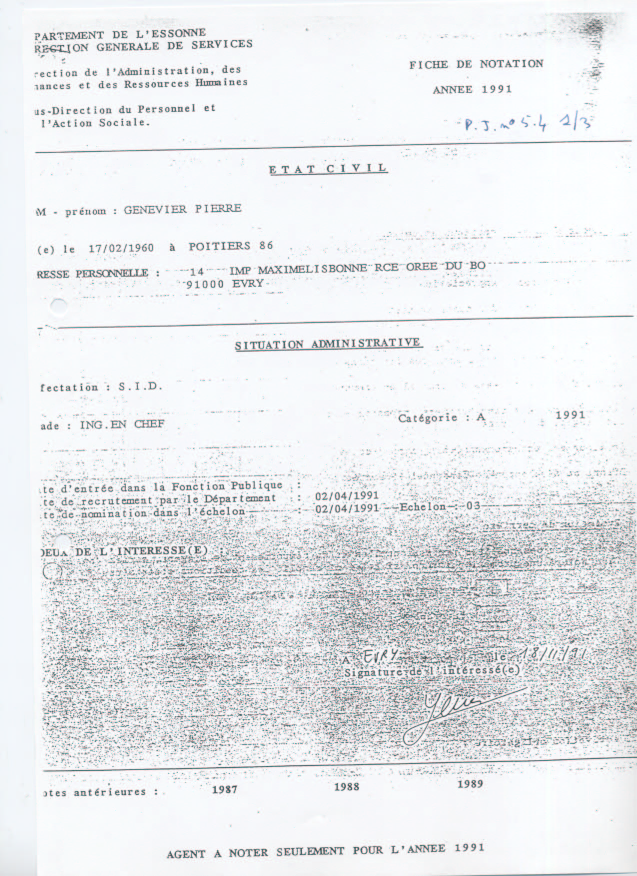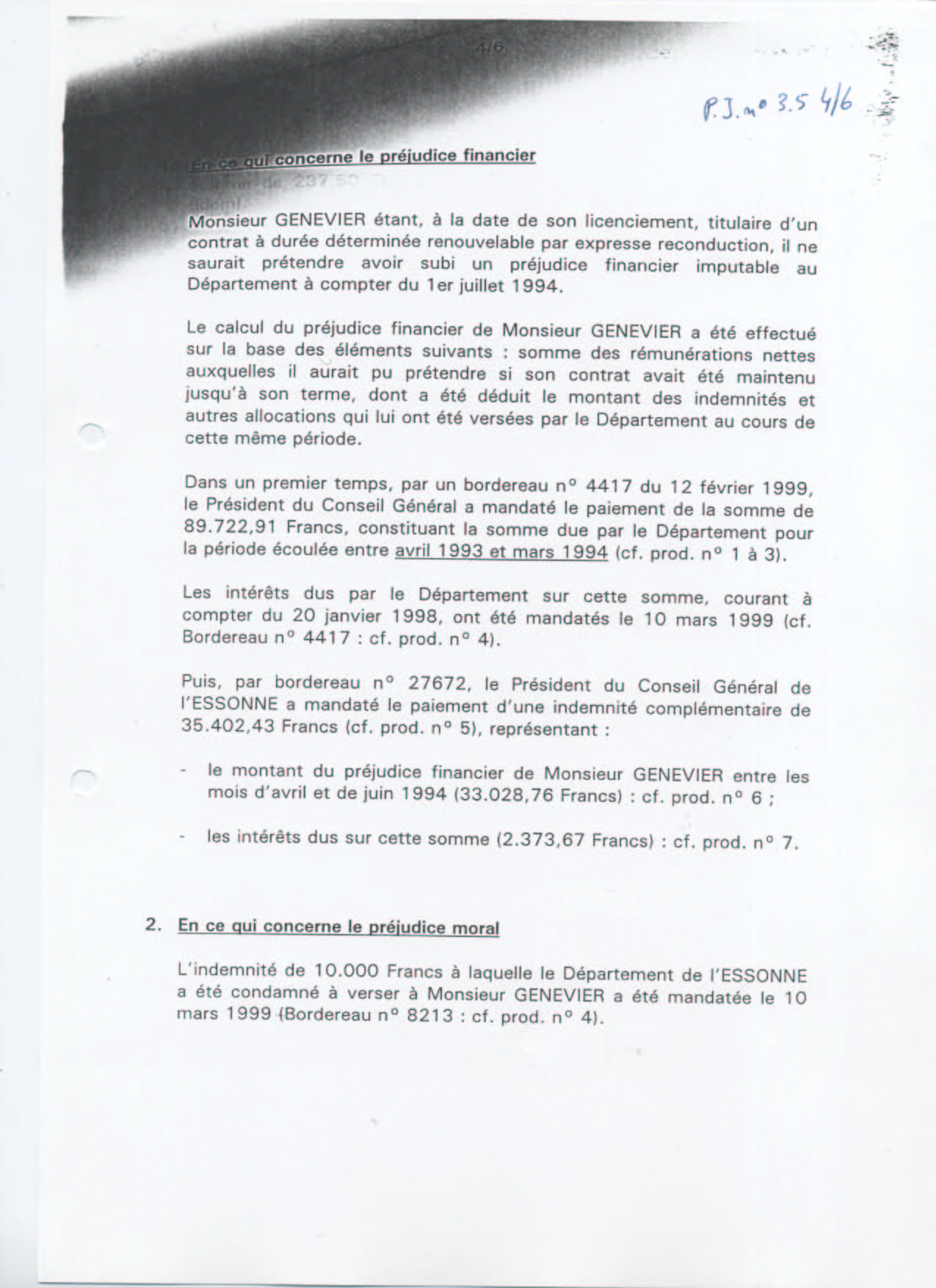 In January 1999, the ‘Court des Comptes’ (COURT OF ACCOUNTS), the agency that controls the work of administration in France listed the Department of Essonne’s various frauds in its annual report and mentioned that the administration lost 100s of millions of francs