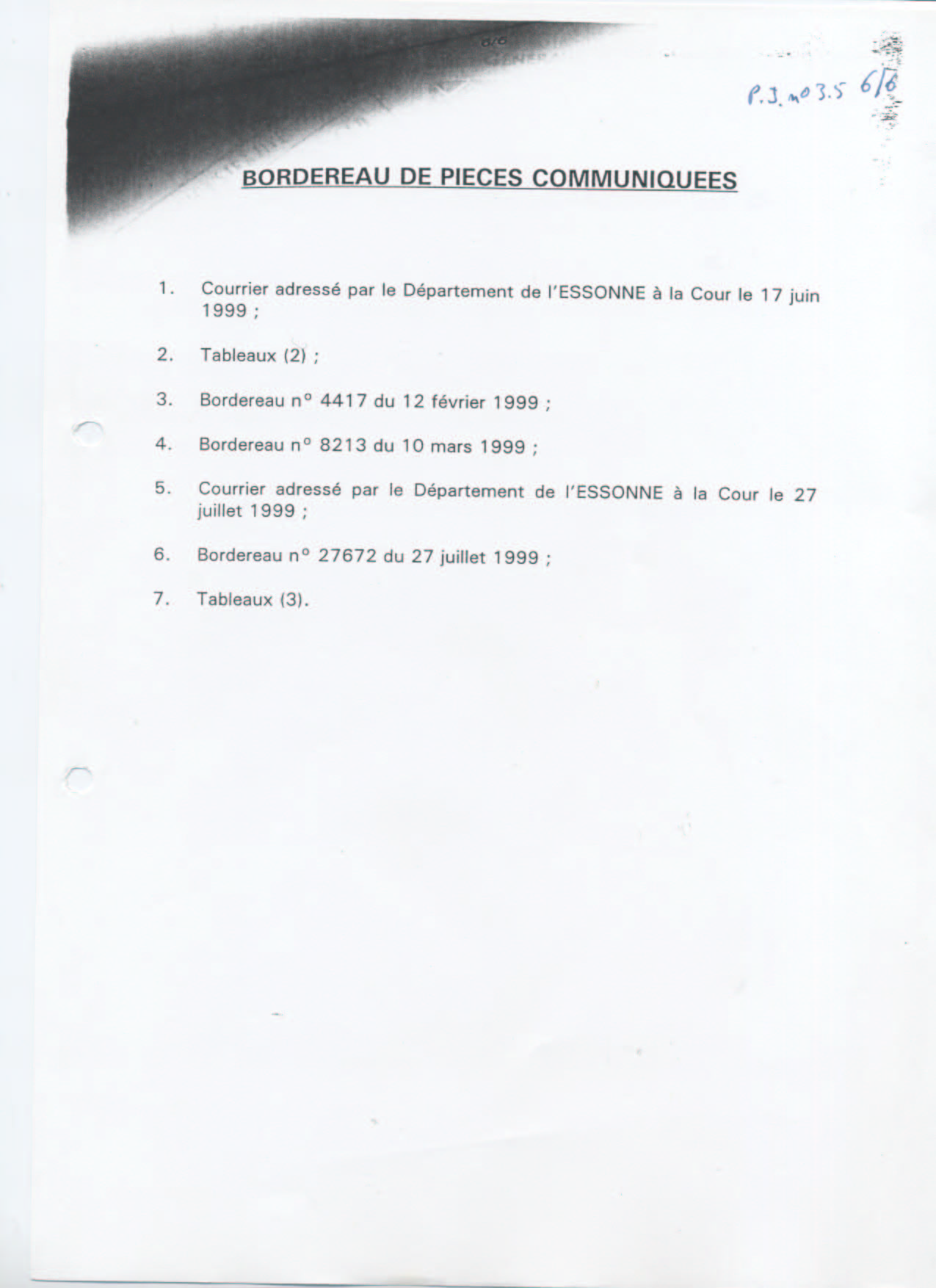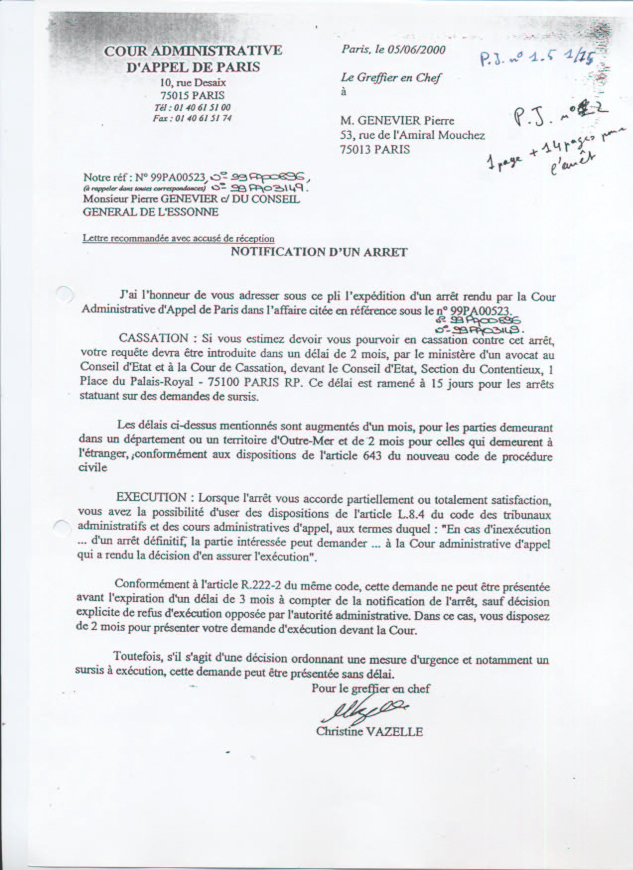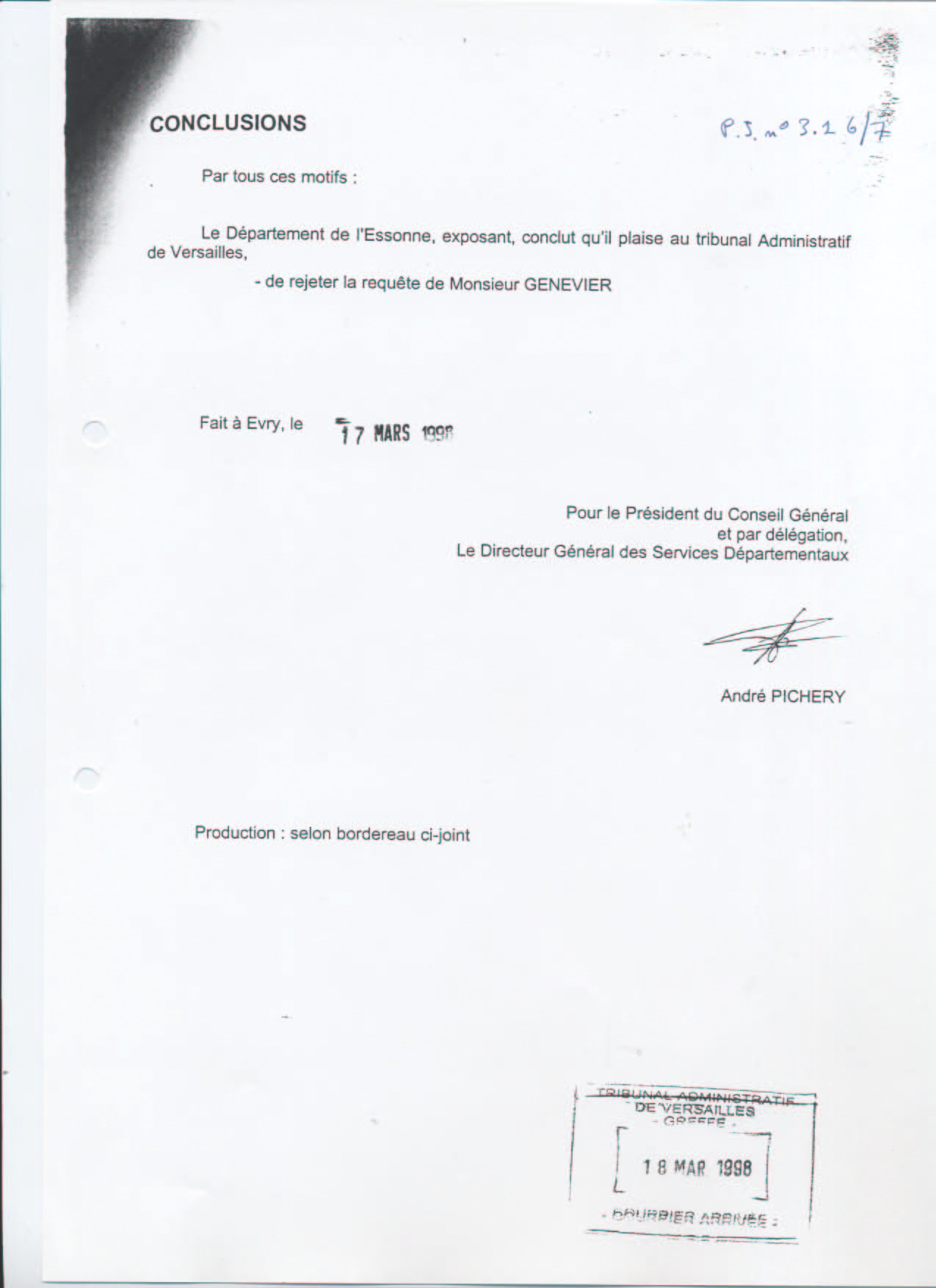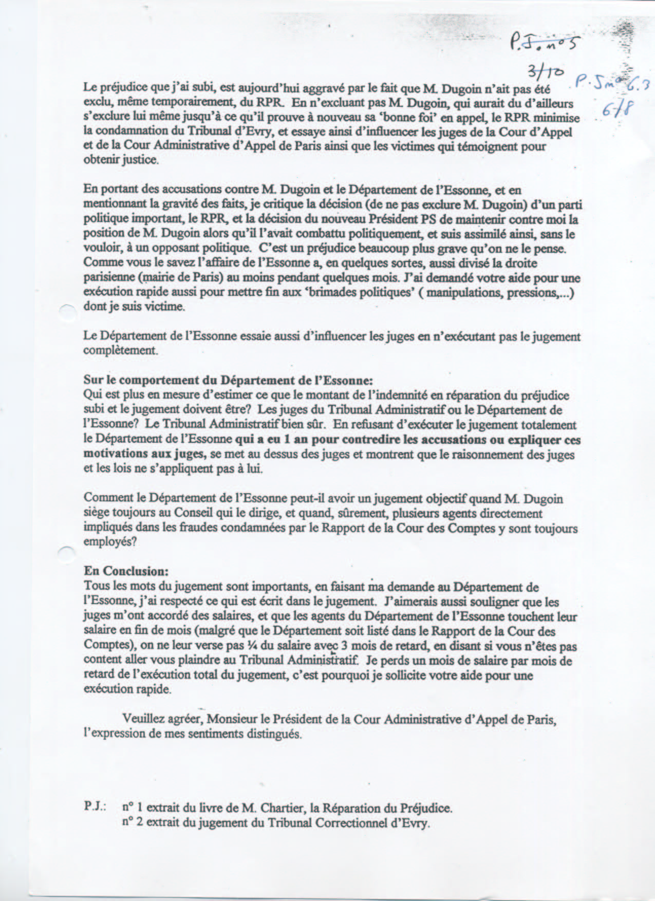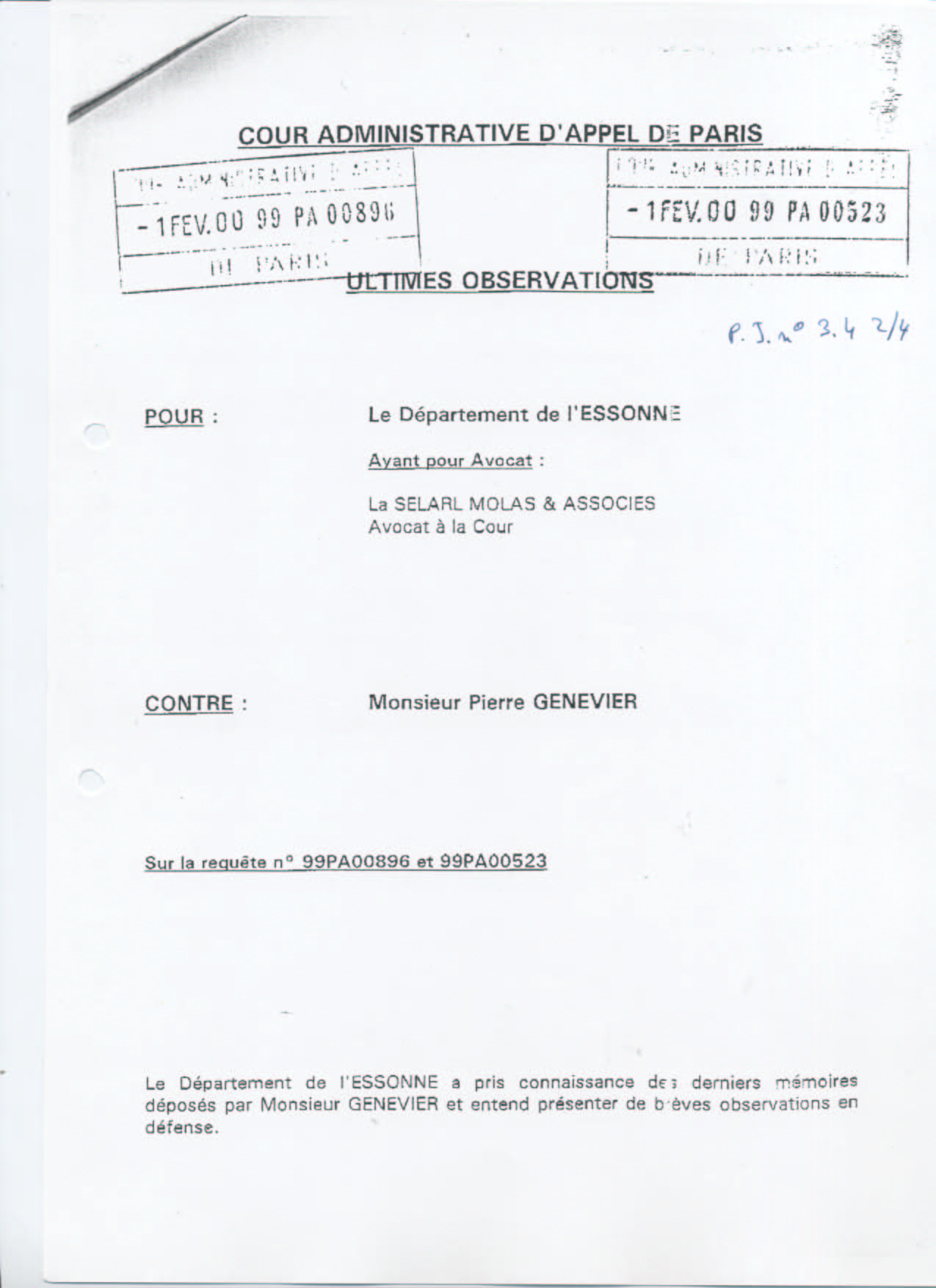 In January 1999, the ‘Court des Comptes’ (COURT OF ACCOUNTS), the agency that controls the work of administration in France listed the Department of Essonne’s various frauds in its annual report and mentioned that the administration lost 100s of millions of francs