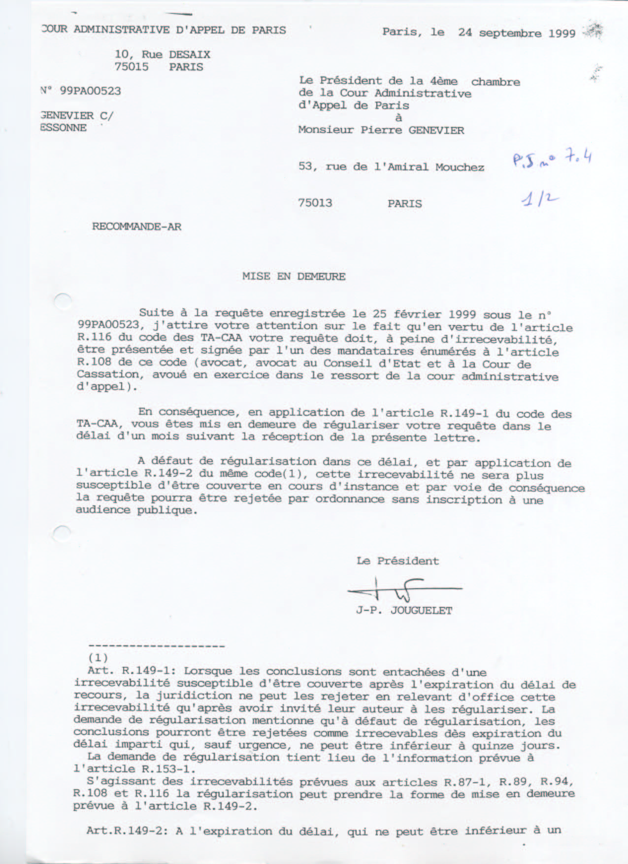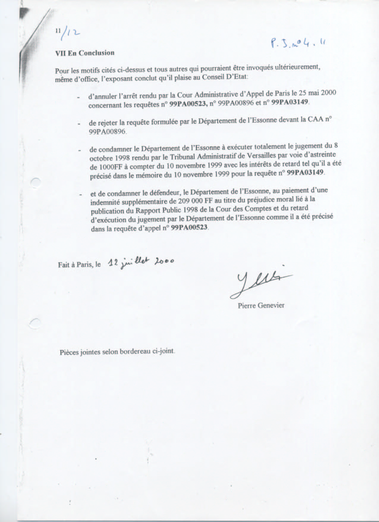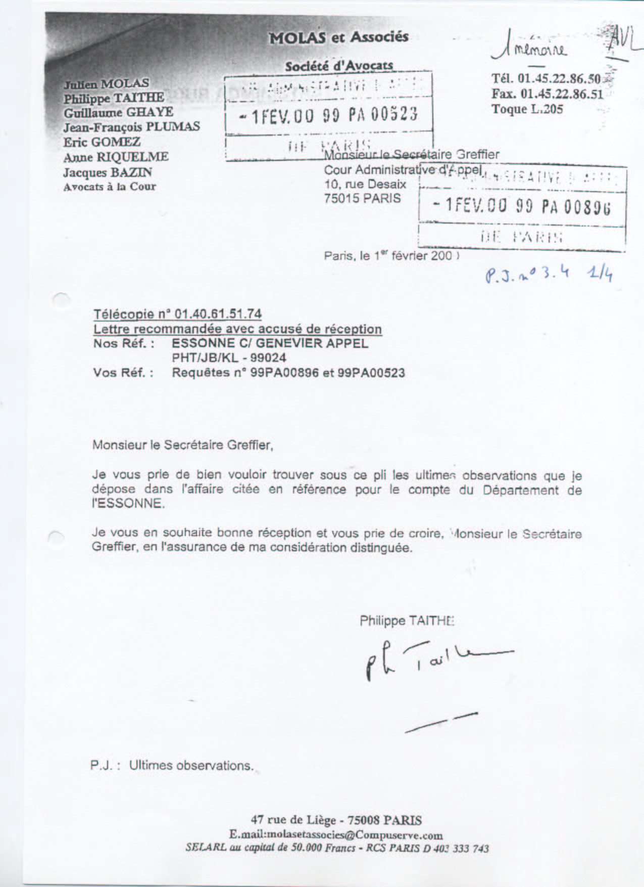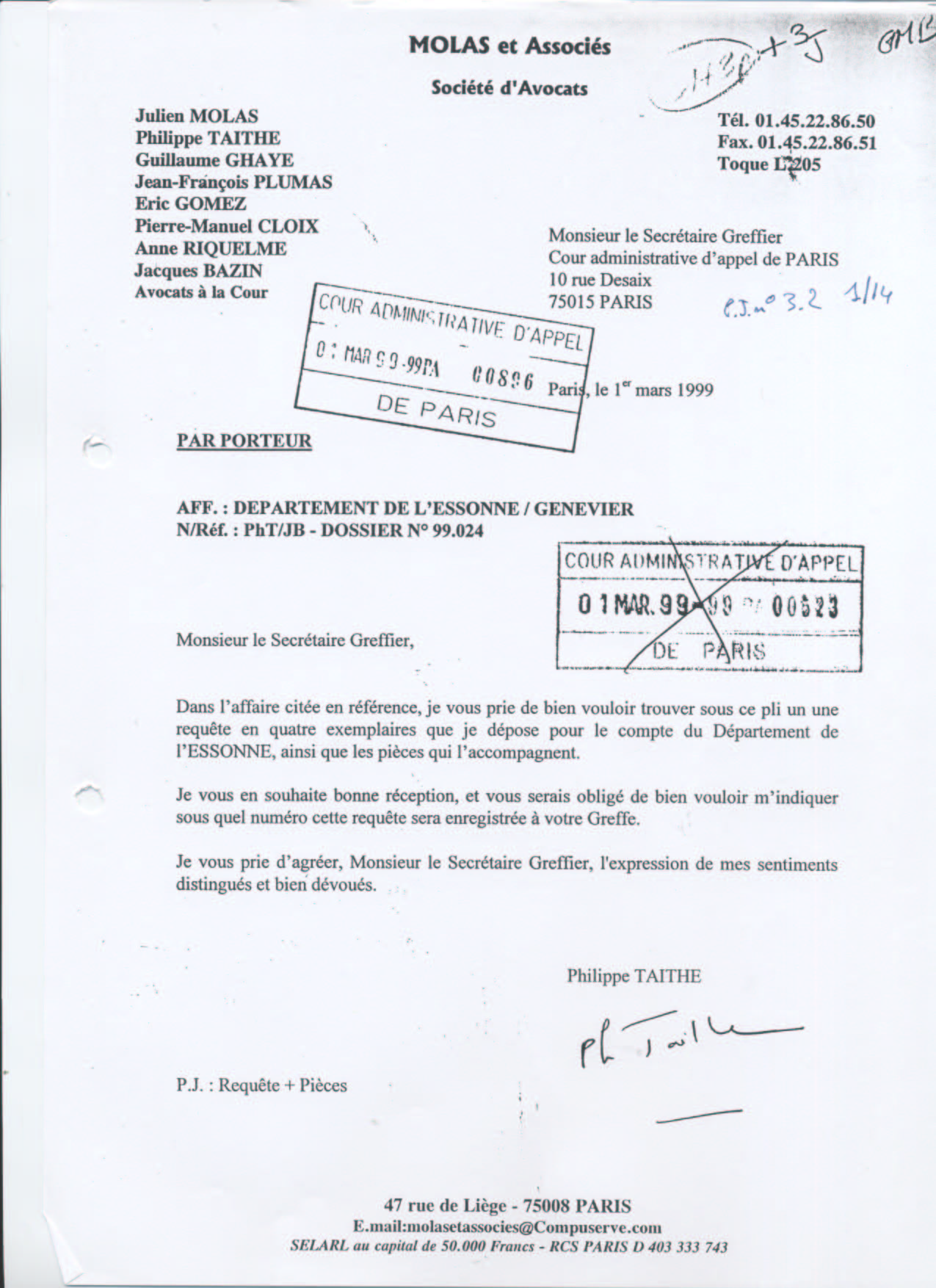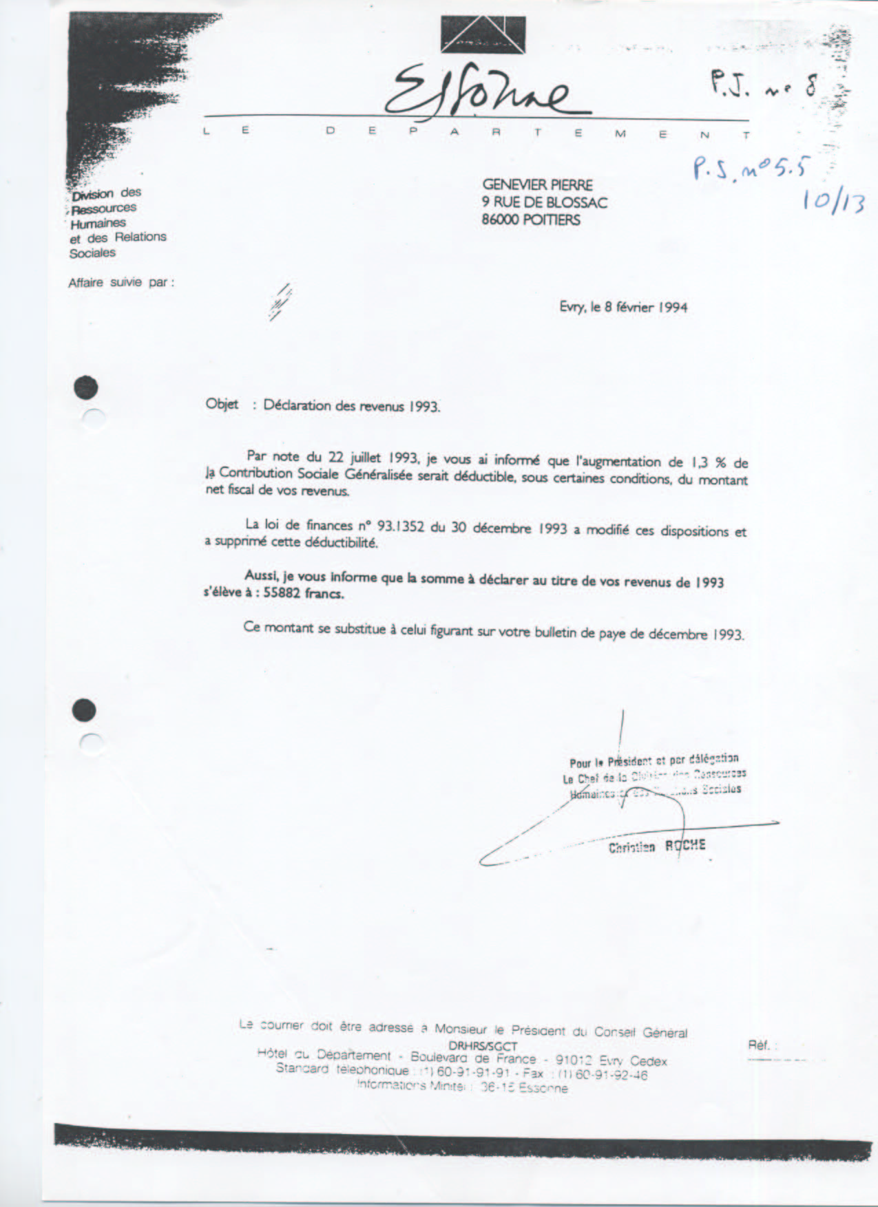 In January 1999, the ‘Court des Comptes’ (COURT OF ACCOUNTS), the agency that controls the work of administration in France listed the Department of Essonne’s various frauds in its annual report and mentioned that the administration lost 100s of millions of francs