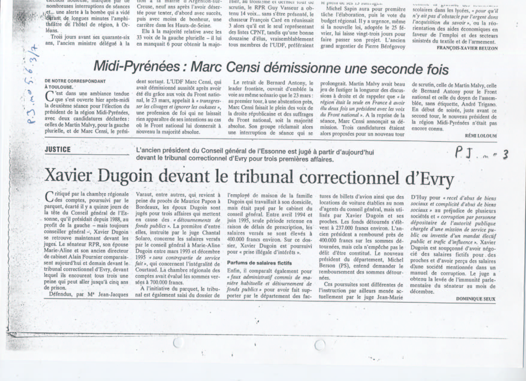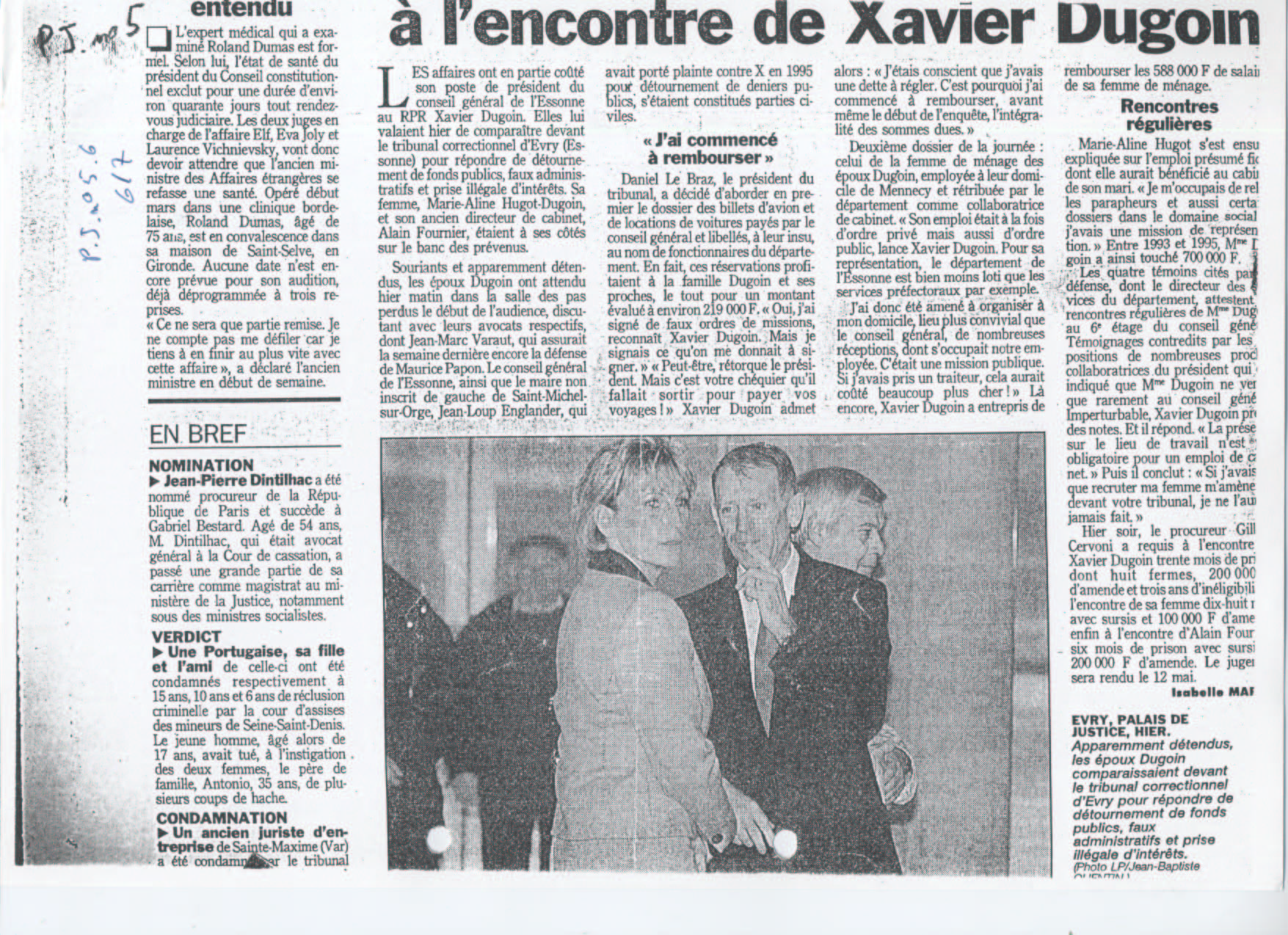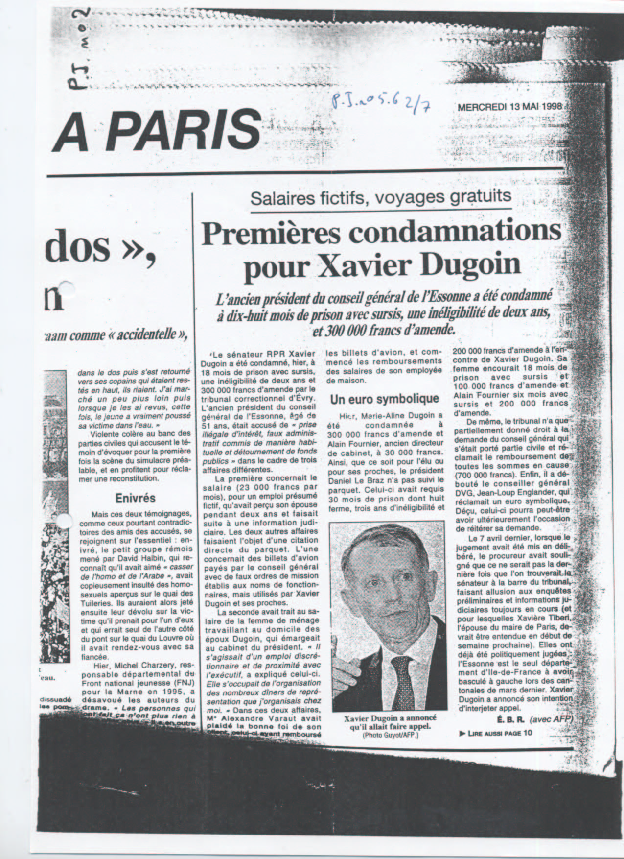 because soon after - in June 94, I believe- an anonymous letter was sent to the justice to denounce the fraud on the travel expenses [see articles on frauds
