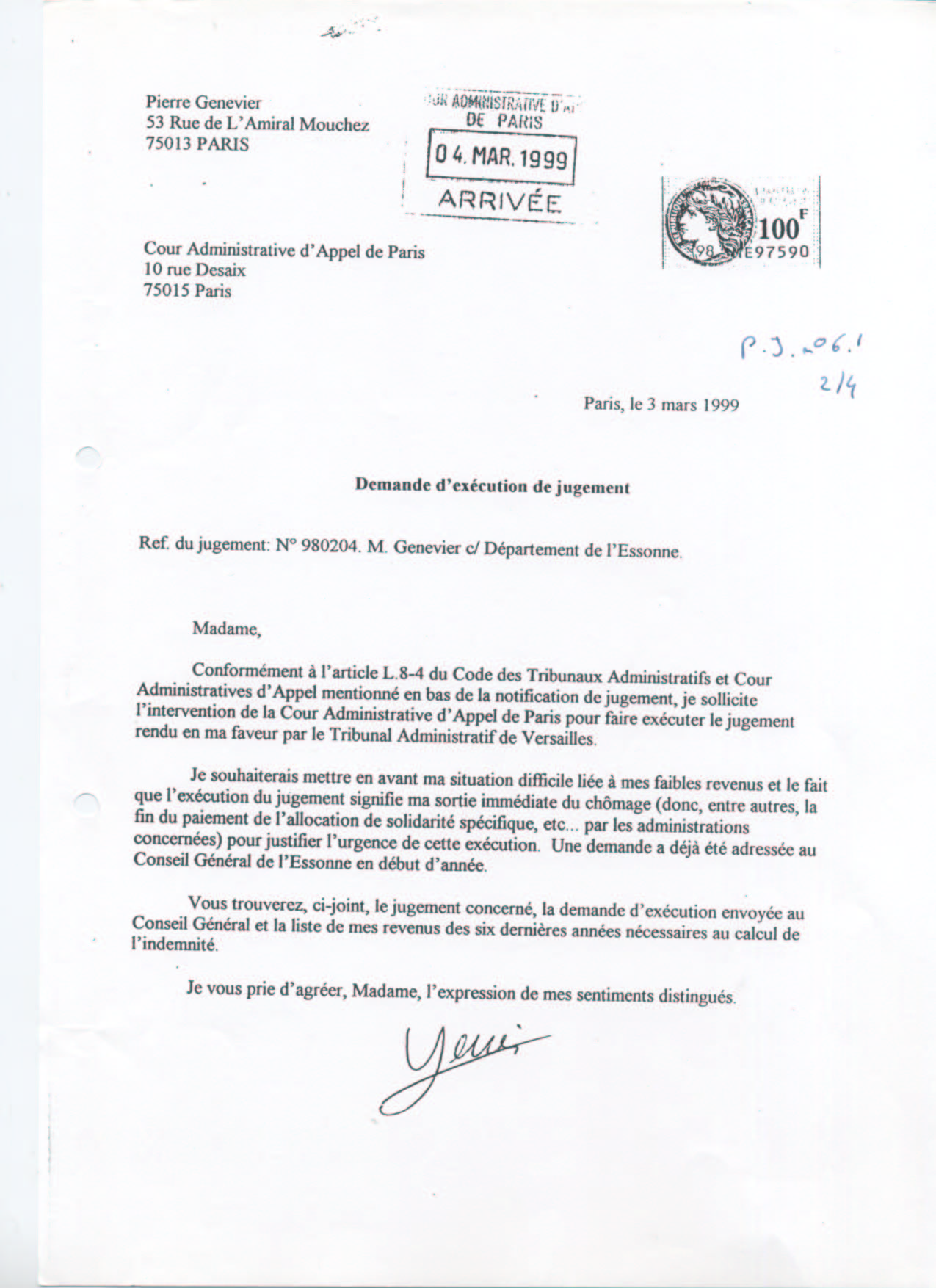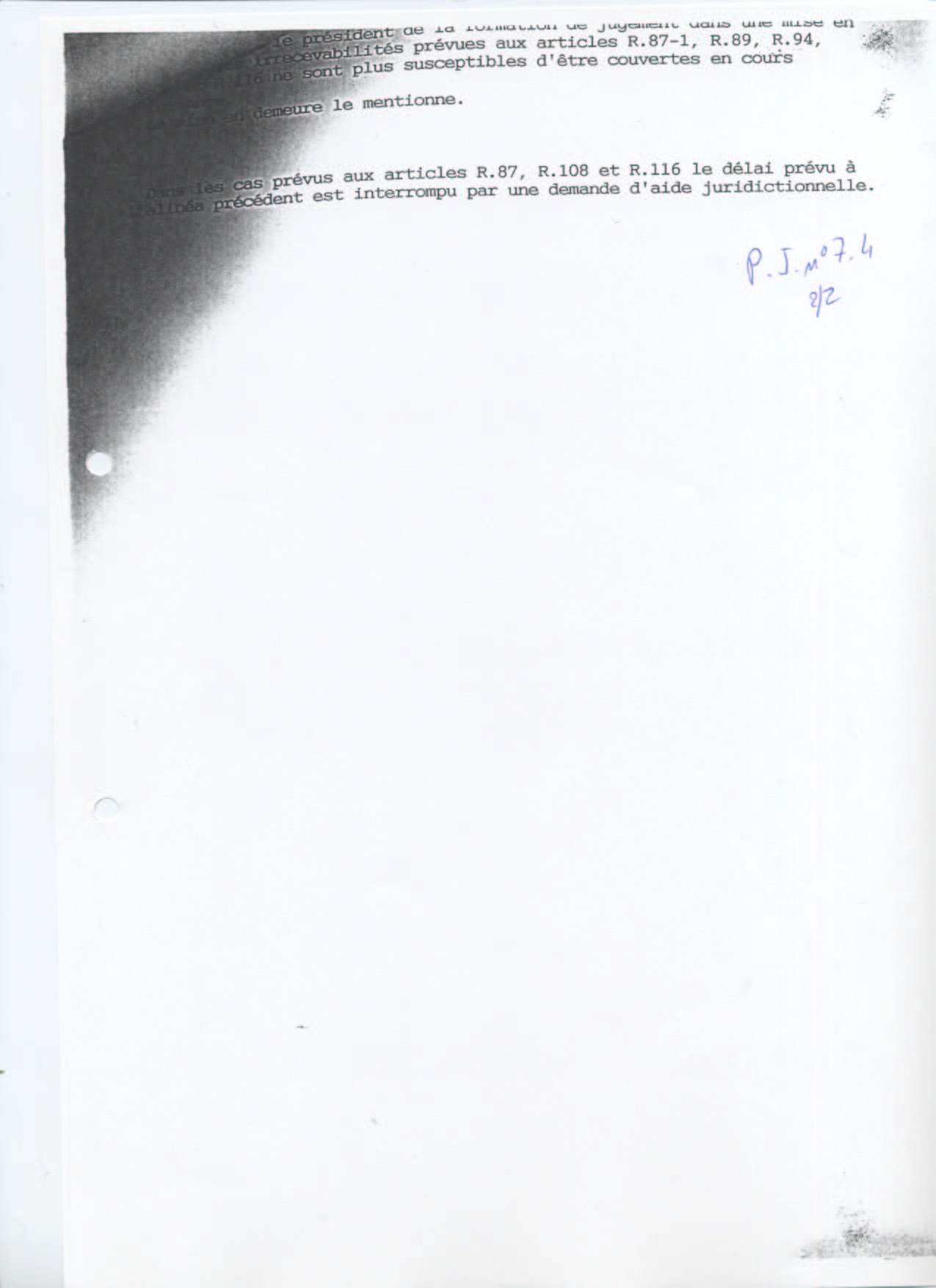 the Appeal Court were stealing me $60 000 at least, money that I should have had to defend my case or pay for a lawyer for example]. The special proceeding was opened by the Court, but the Department and its lawyer (that knew they were wrong) never responded to my arguments on the length of the contract and the ‘Code du Travail’ article L122-1-2, and on the judgment formula, and this special proceeding was never judged, of course, because they knew (the Appeal Court, the Department and its lawyer) that they were cheating (that the way they complied with the judgment was completely incoherent).
