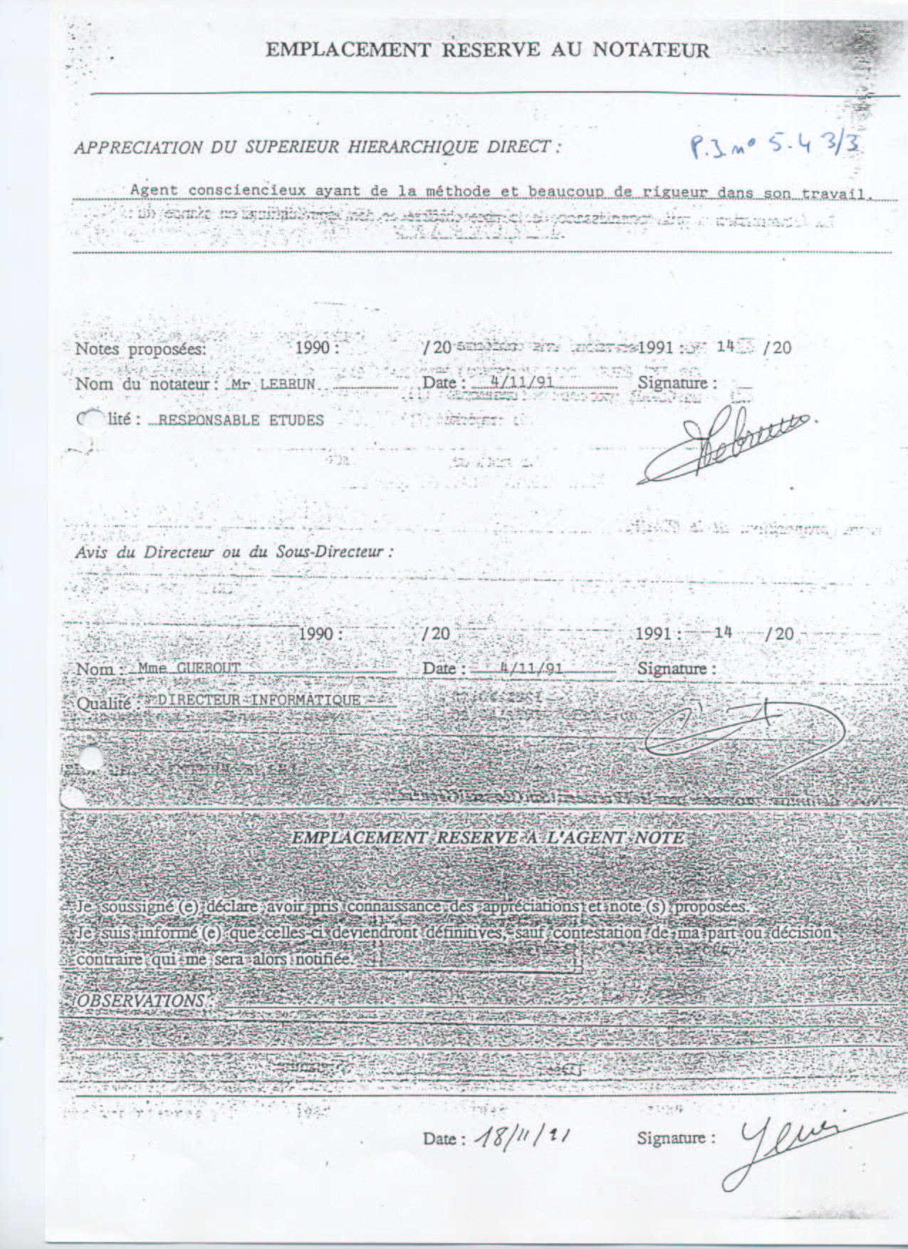 My contract at Reuters was renewed several times, and according to the law I should have obtained a permanent job (after the third renewal), but I did not (!), and had to return in France in 1996 after my 5th and last contract. In France, my difficulties started again, but at the same time the Press and Media started talking about the frauds at the Department of Essonne [