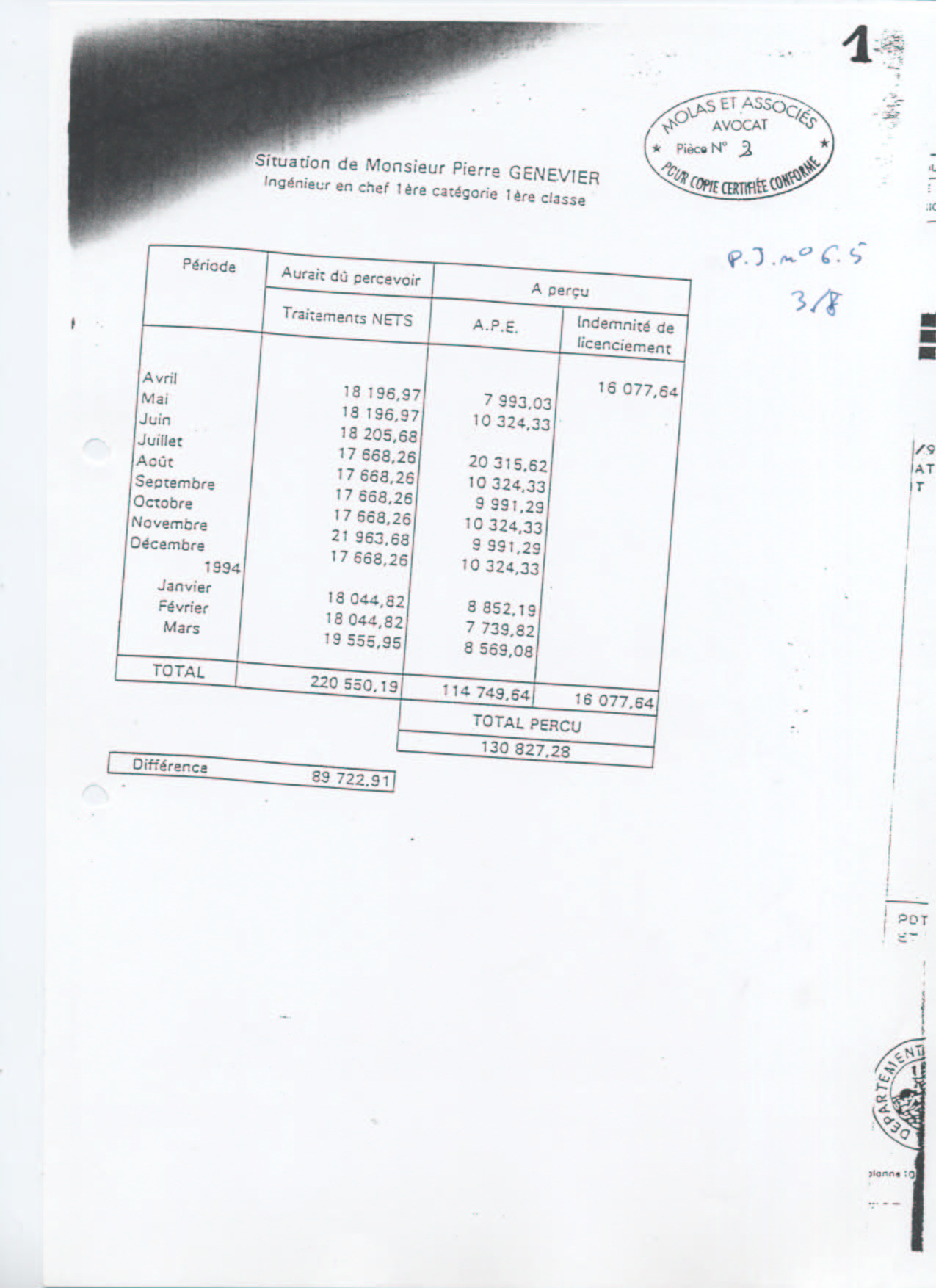 (p8)]. The judgment was clearly written, but the amount of money granted had to be calculated with a formula given by the court, and (according to the law) it could not be lower than the prejudice I suffered after the guilt had been proven. I will ‘talk’ about the compliance issues below because the Department and the Appeal Court cheated to steal me the judgment. It was obvious that the amount due by the administration was the FF 435 000 (about $80 000), but the Department refused to pay before the time to appeal ended (February 1999), and then made 3 payments over a 9 months period adding up to $20 000 only.